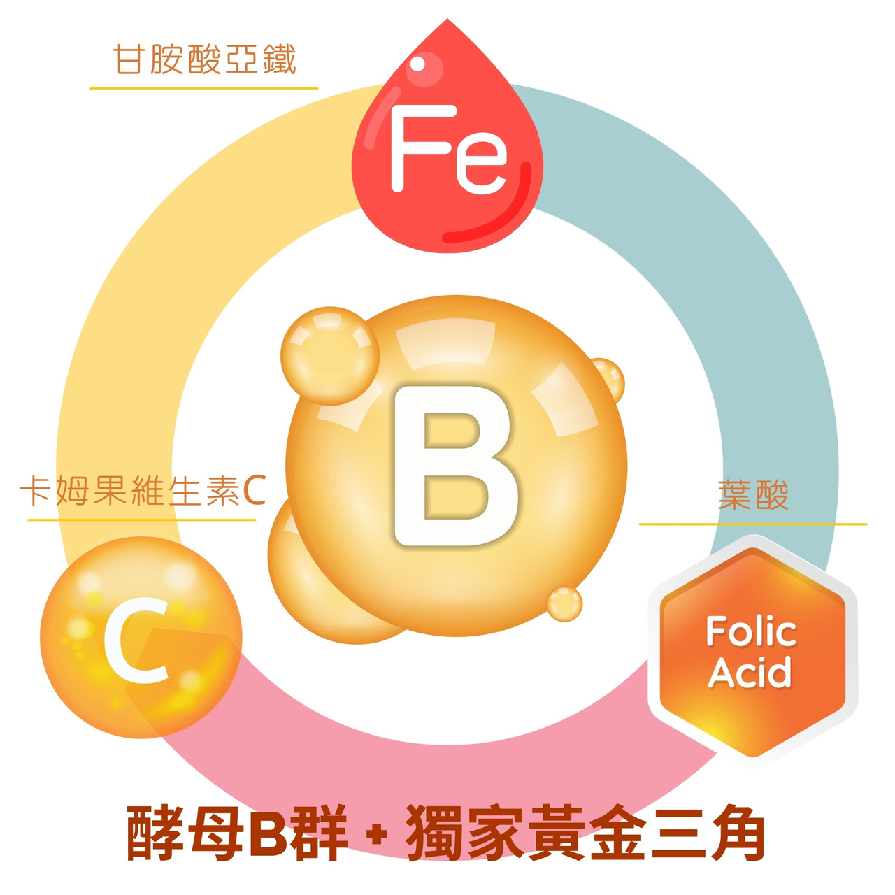 成 分:卡姆果粉(維生素C、麥芽糊精、卡姆果粉)、酵母B群粉(啤酒酵母發酵物(啤酒酵母粉、菸鹼酸、本多酸鈣、維生素B1、維生素B2、維生素B6、葉酸、生物素、維生素B12) )、甘胺酸亞鐵(甘胺酸亞鐵、檸 檬酸、麥芽糊精、二氧化矽) 、玉米澱粉、薑黃萃取物、硬脂酸鎂、二氧化矽、胡椒鹼膠囊成分:羥丙基甲基纖維素、純水、鹿角菜膠、氯化鉀